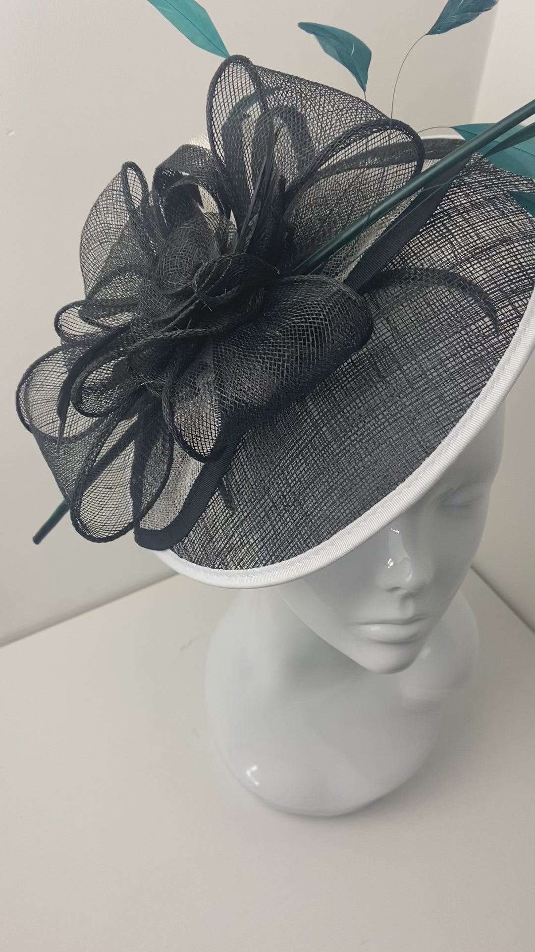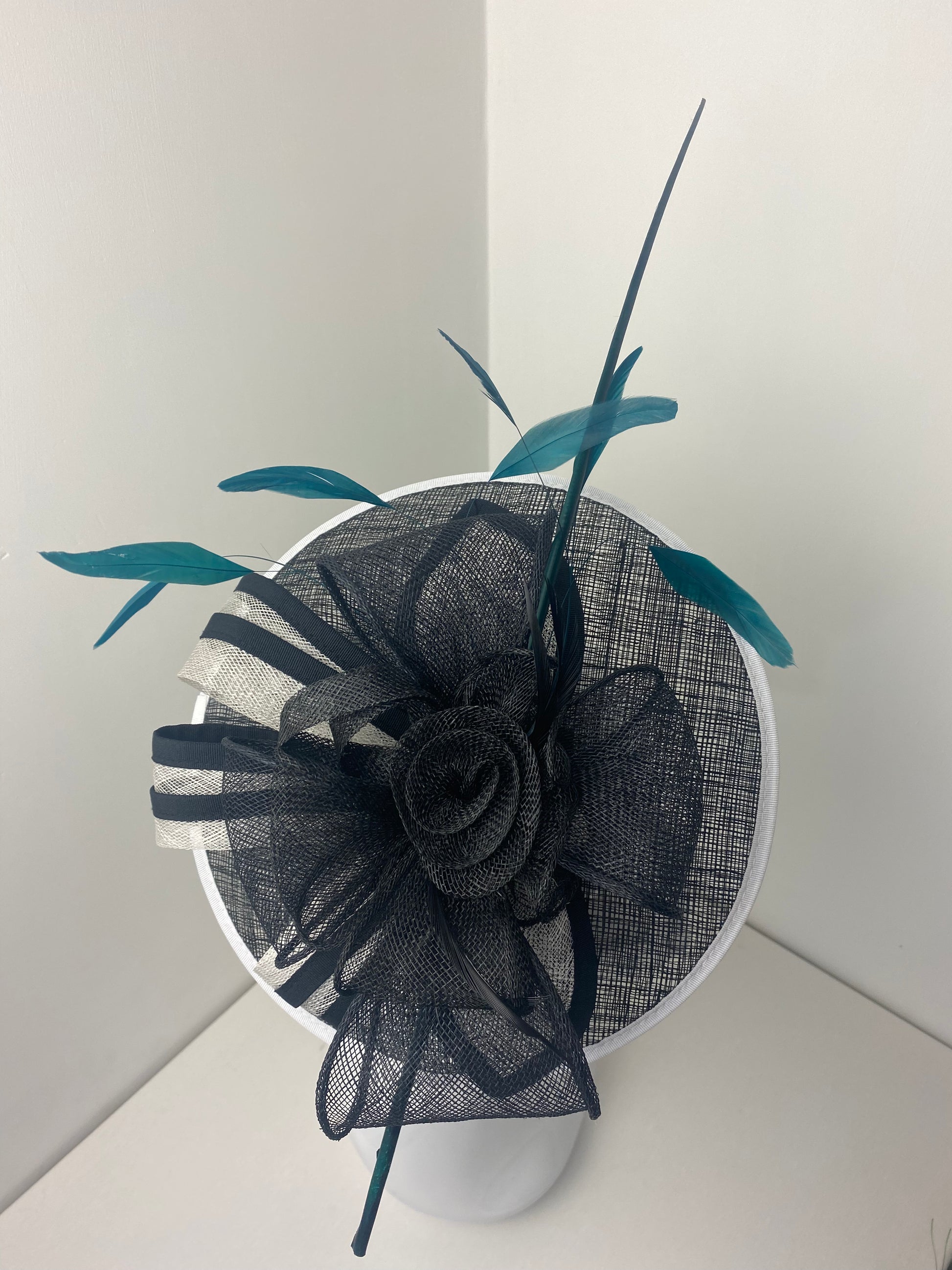 Adorned with teal fluffy coque feathers and a co-ordinating teal quill.