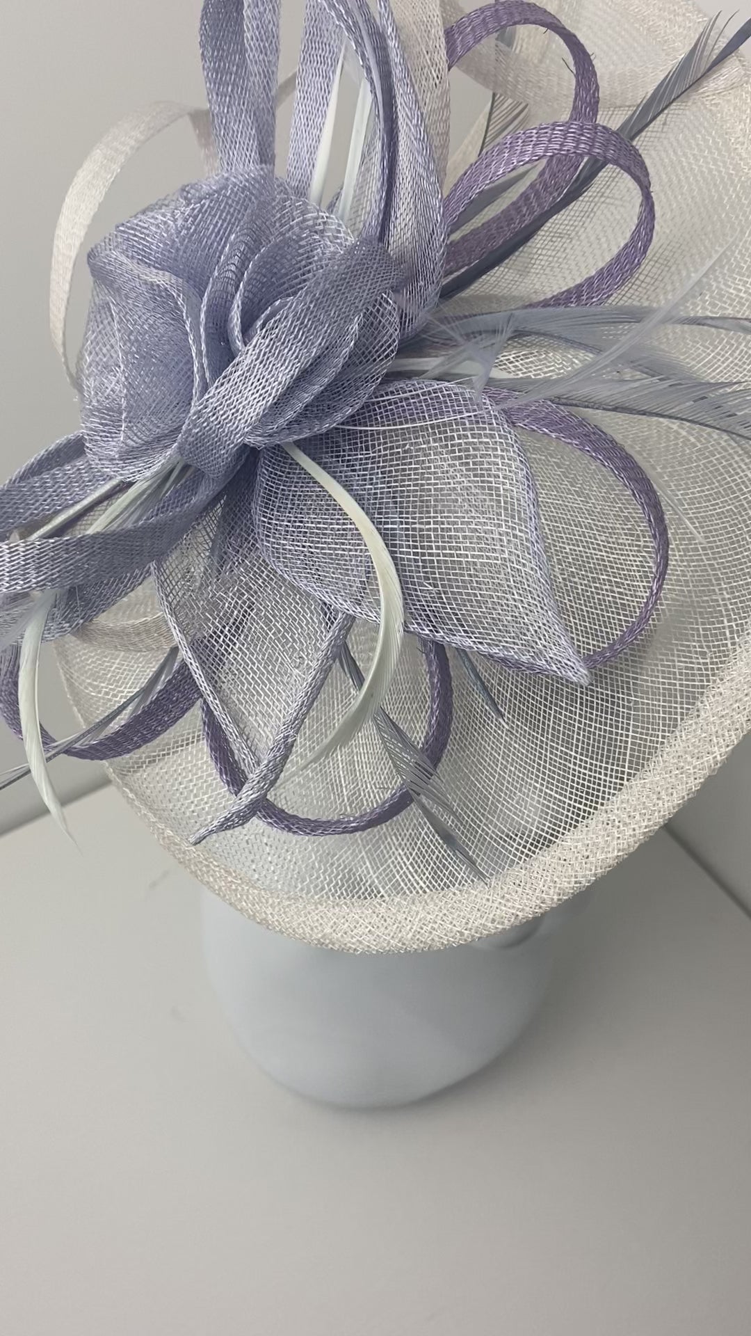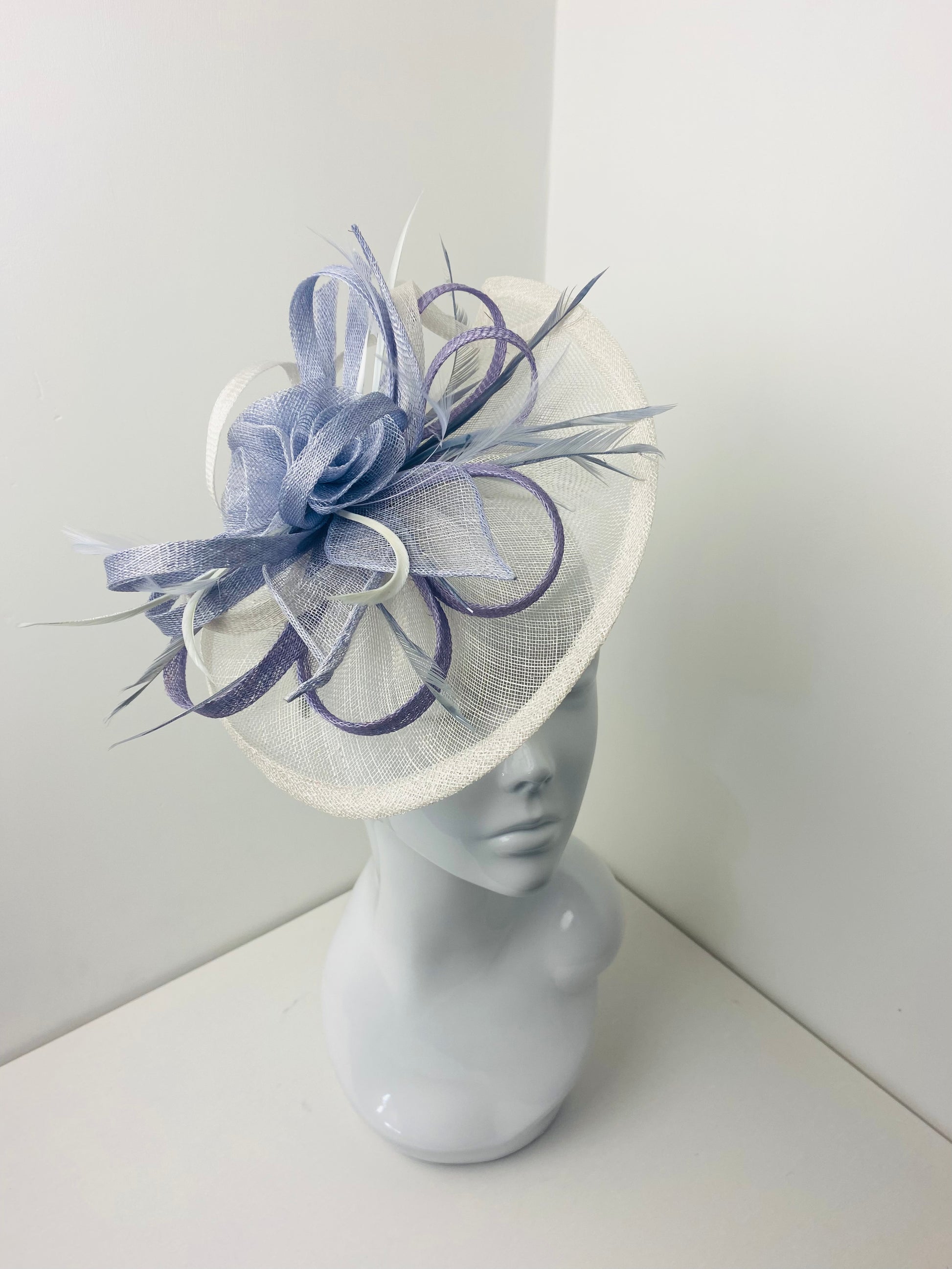 Crafted from natural sinamay, with feather detail and sinamay floral centre detail.
