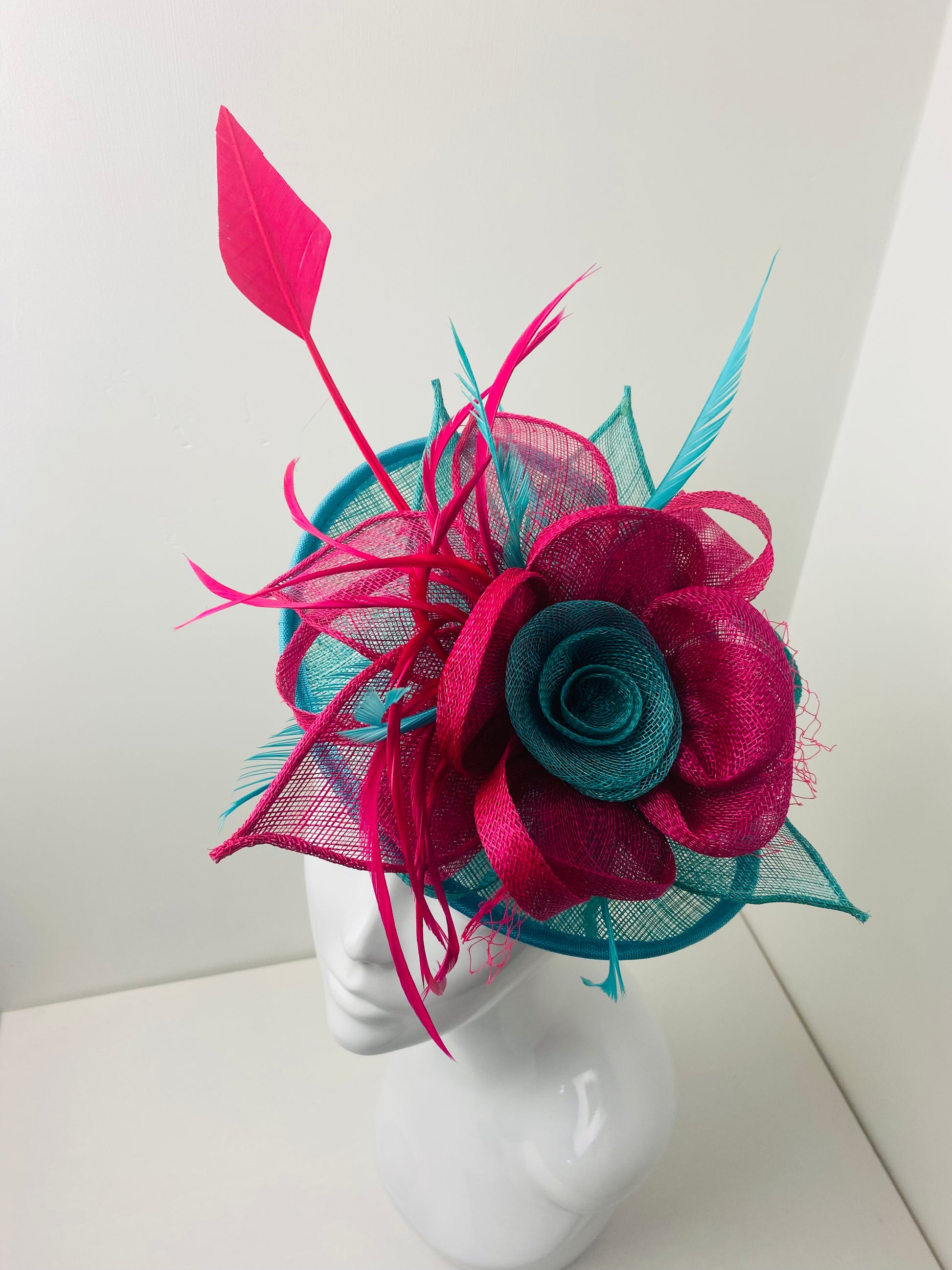 Bespoke Raspberry & Turquoise Oval Disc Hatinator