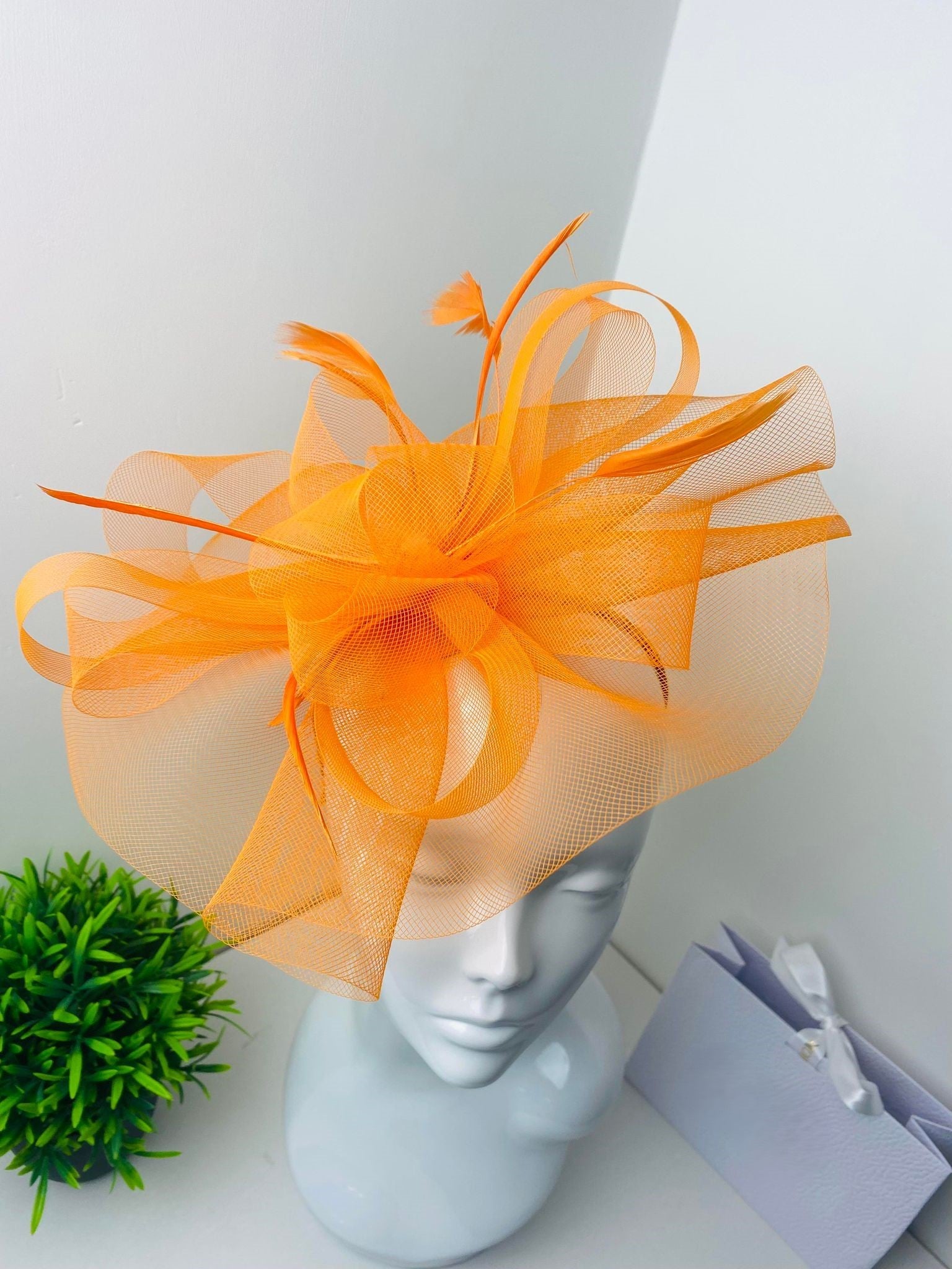 Clarissa Bright Orange Large Fascinator