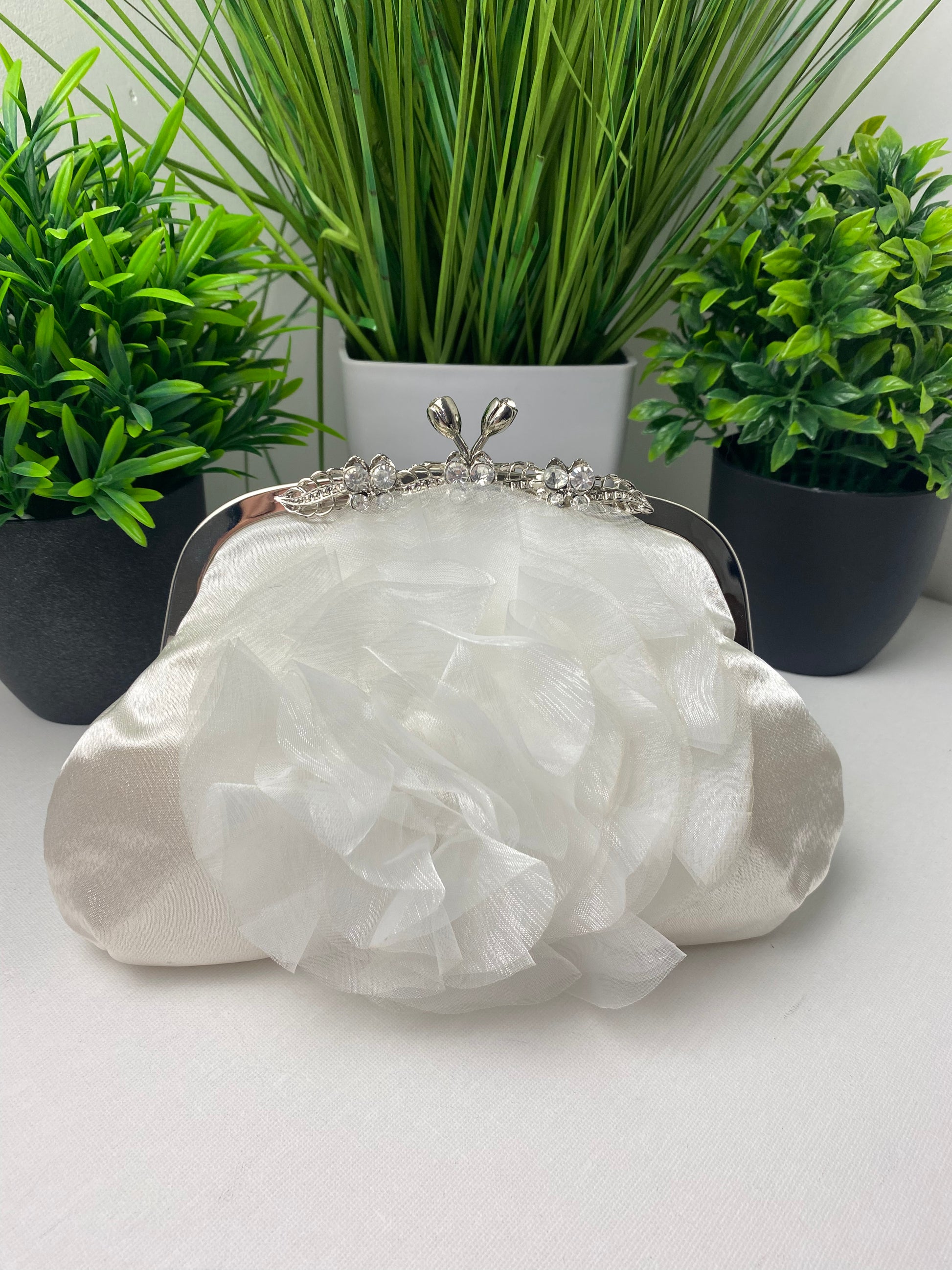 Ivory Satin 3D Floral Occasion Clutch Bag