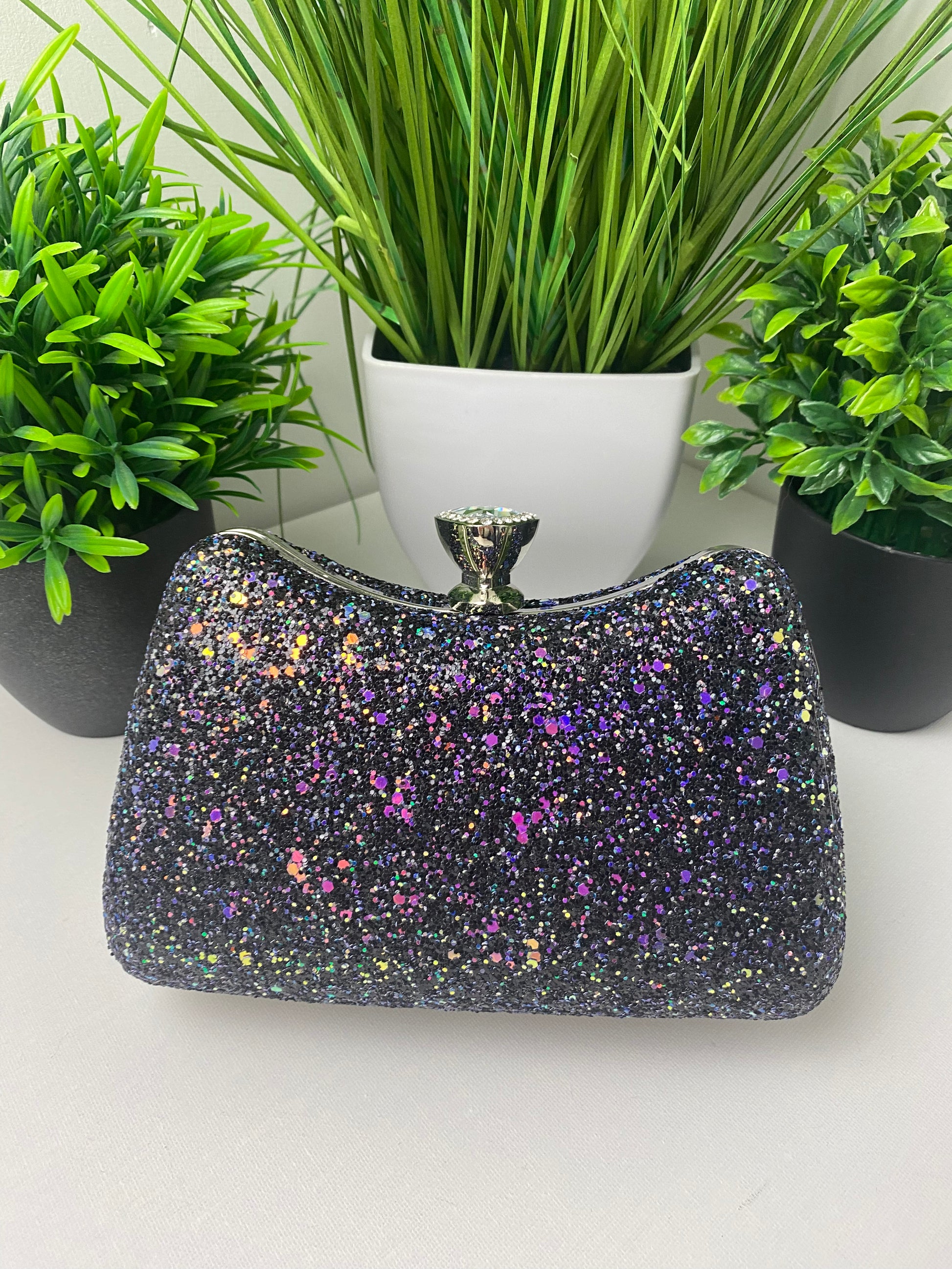 Multicoloured Black Sparkly Occasion Clutch Bag