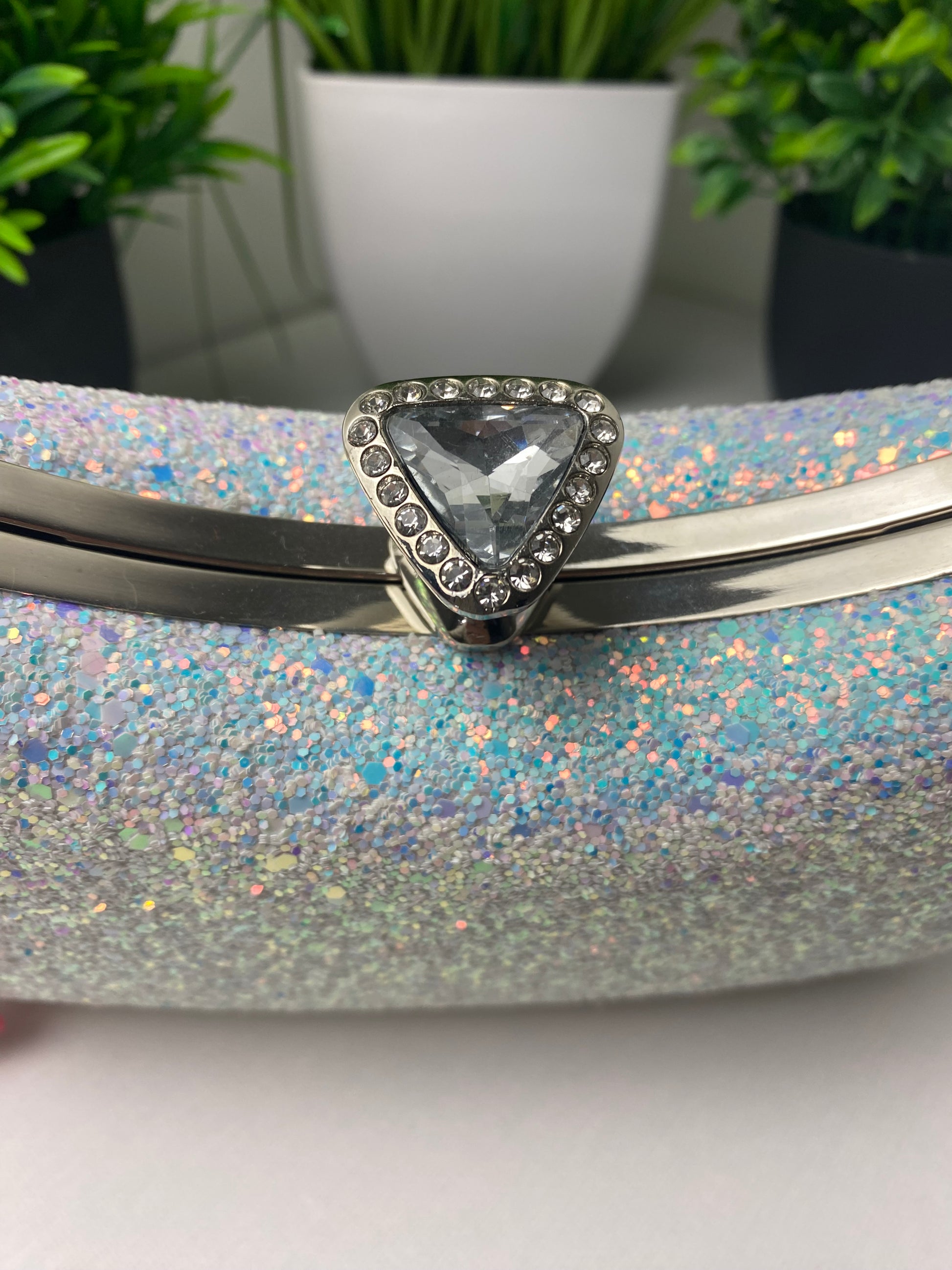 Beautiful sparkly design. White base colour with multicolour sparkle embellishments.